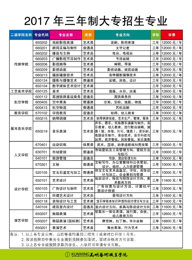 昆藝2017年三年制大專招生簡(jiǎn)章