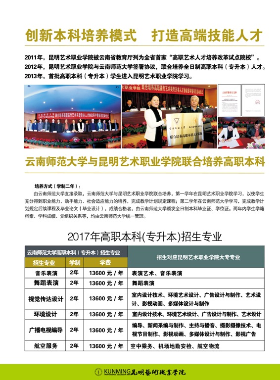 昆藝2017年本科招生簡章(專升本)