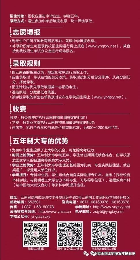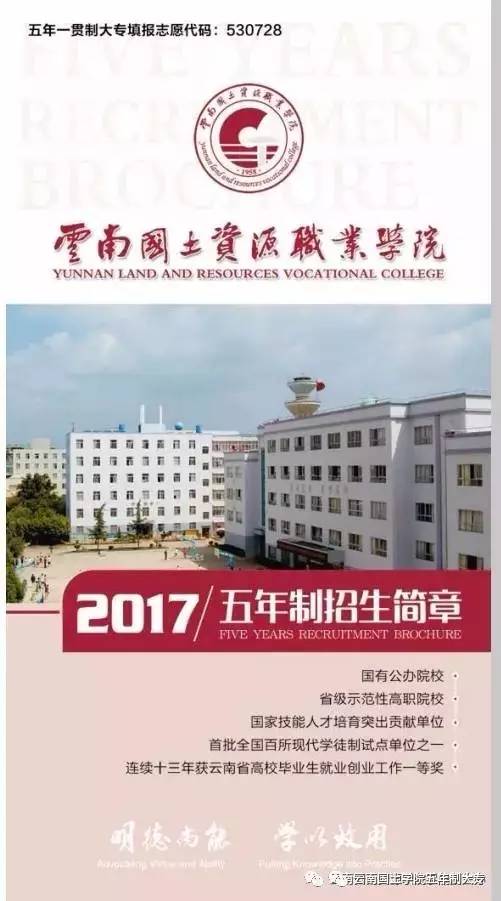 云南國(guó)土資源職業(yè)學(xué)院2017年五年一貫制大專招生簡(jiǎn)章