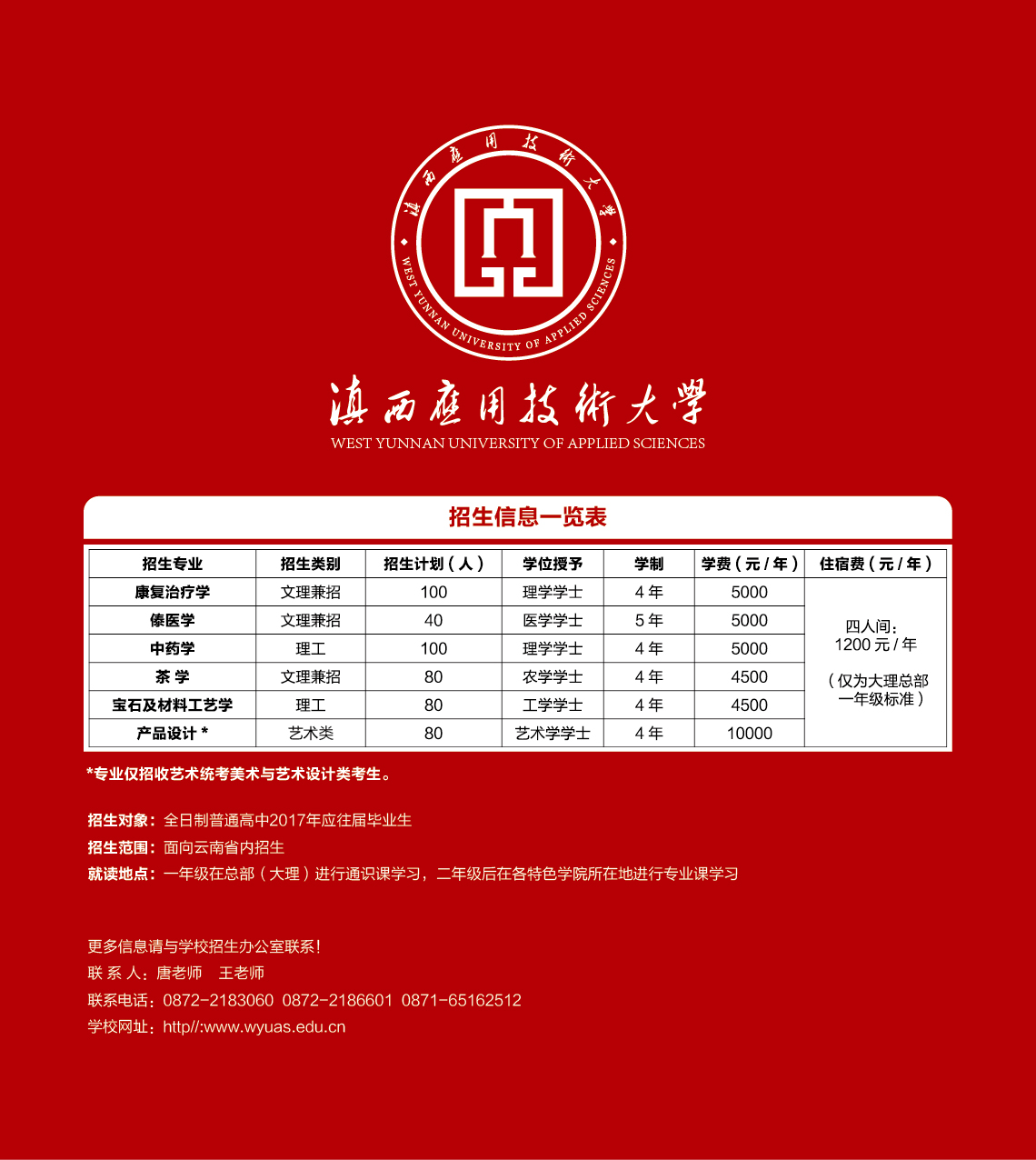 滇西應(yīng)用技術(shù)大學(xué)2017年招生簡(jiǎn)章