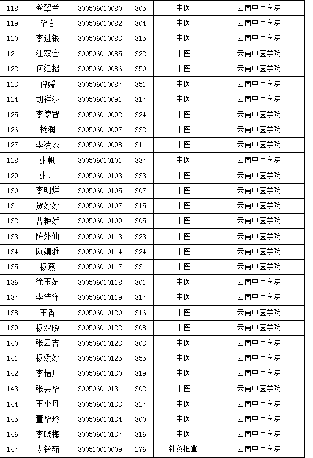 保山中醫(yī)專2017年專升本錄取名單(截止2017.06.06)