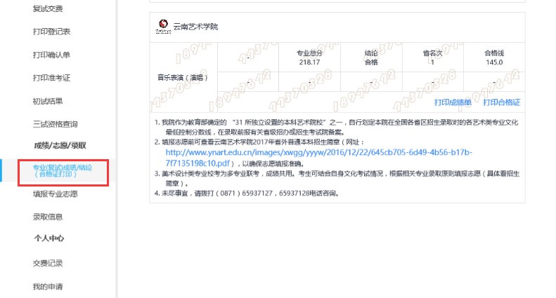 云南藝術(shù)學(xué)院2017年省外合格成績(jī)發(fā)布說(shuō)明