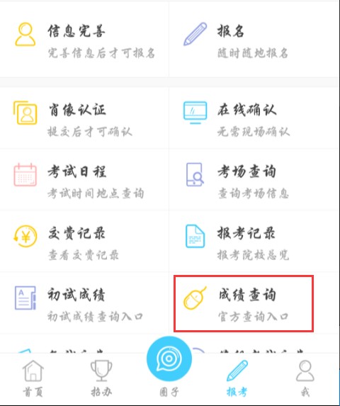 藝考升手機(jī)端成績(jī)查詢(xún)?nèi)肟冢河米?cè)賬號(hào)登錄藝考升APP客戶(hù)端—>選擇【報(bào)考】—>點(diǎn)擊【成績(jī)查詢(xún)】。