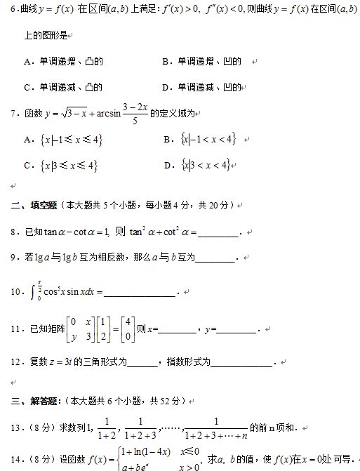 數(shù)學(xué)歸納法,數(shù)學(xué)歸納法應(yīng)用;數(shù)列的極限;極限與連續(xù),數(shù)列極限與無(wú)窮大量;函數(shù)的極限;極限的四則運(yùn)算;函數(shù)的連續(xù)性。