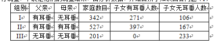 (4)在第Ⅰ組中的一對(duì)夫婦,第1個(gè)孩子無(wú)耳垂,該夫婦再生一個(gè)孩子無(wú)耳垂的幾率是 。