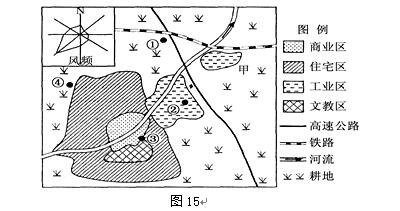 34. (5分)圖15為某城市功能分區(qū)示意圖。讀圖回答問題(1)~(3)。