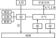 全球氣候變化引起國際社會的普遍關(guān)注,圖8為大氣受熱過程示意圖。讀圖回答第22~23小題。
