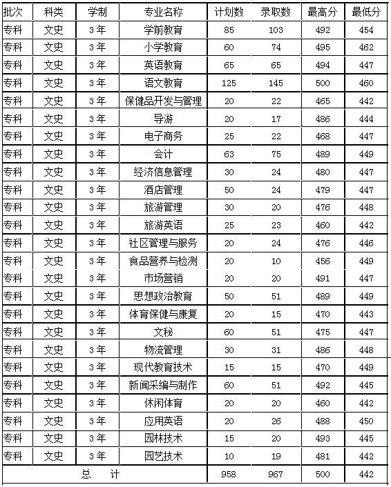 | 五年制大專 | 5年 | 學(xué)前教育 | 50 | 100 | 482 | 370 |