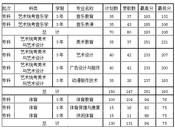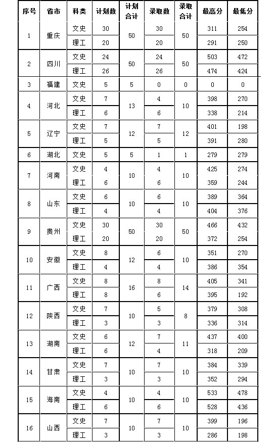 | 批次 | 學(xué)制 | 專業(yè)名稱 | 計劃數(shù) | 錄取數(shù) | 最高分 | 最低分 |