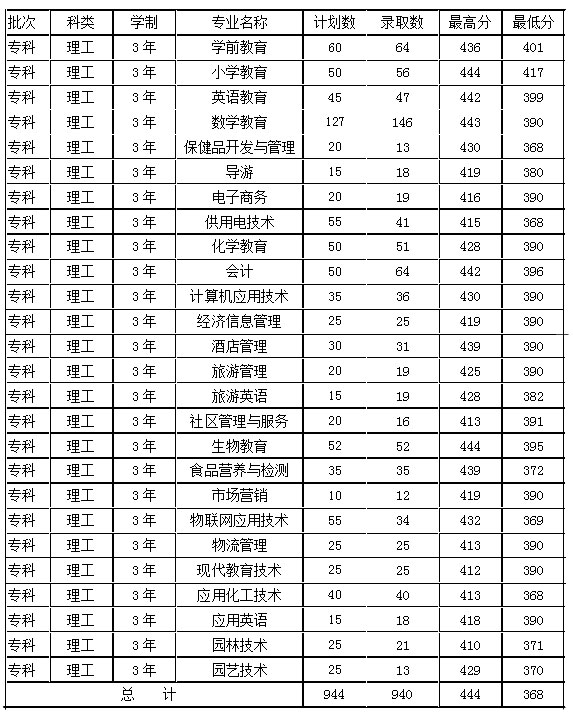 | 五年制大專 | 5年 | 小學(xué)教育 | 50 | 60 | 499 | 361 |