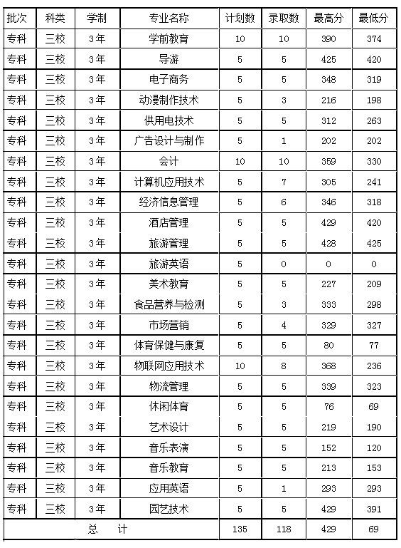 | 五年制大專 | 5年 | 旅游服務(wù)與管理 | 50 | 37 | 533 | 361 |