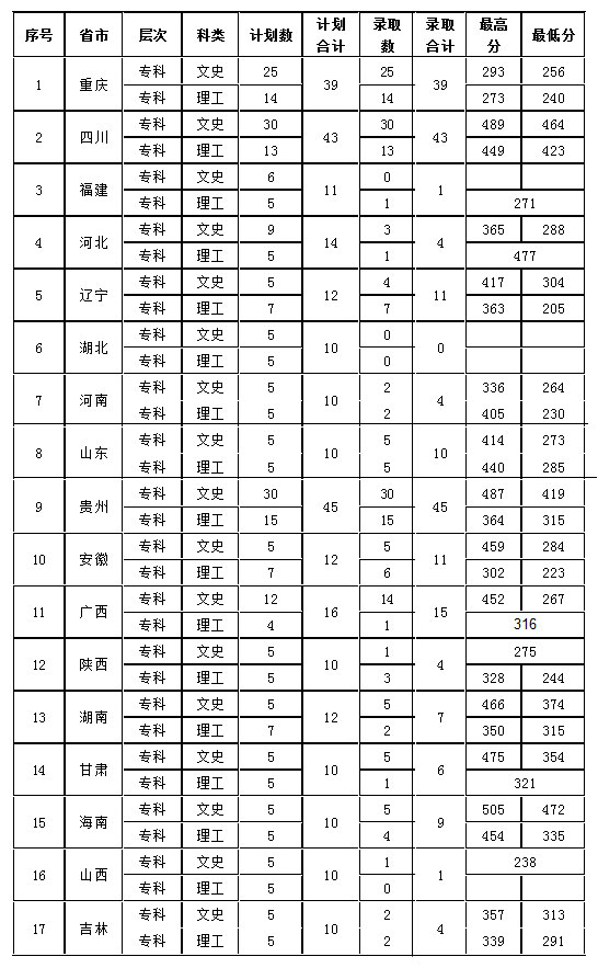 麗江師范高等??茖W(xué)校2014年各省各類錄取分?jǐn)?shù)情況表 一、各省普通???/strong> 1、省外專科文史、理工類