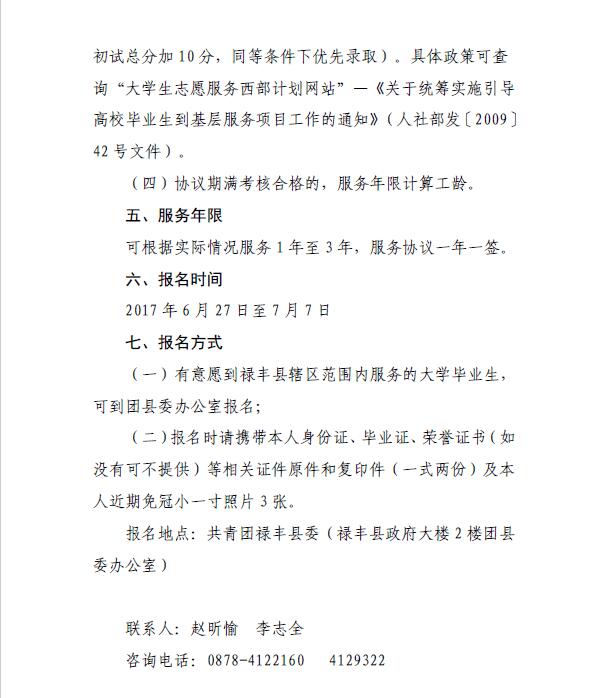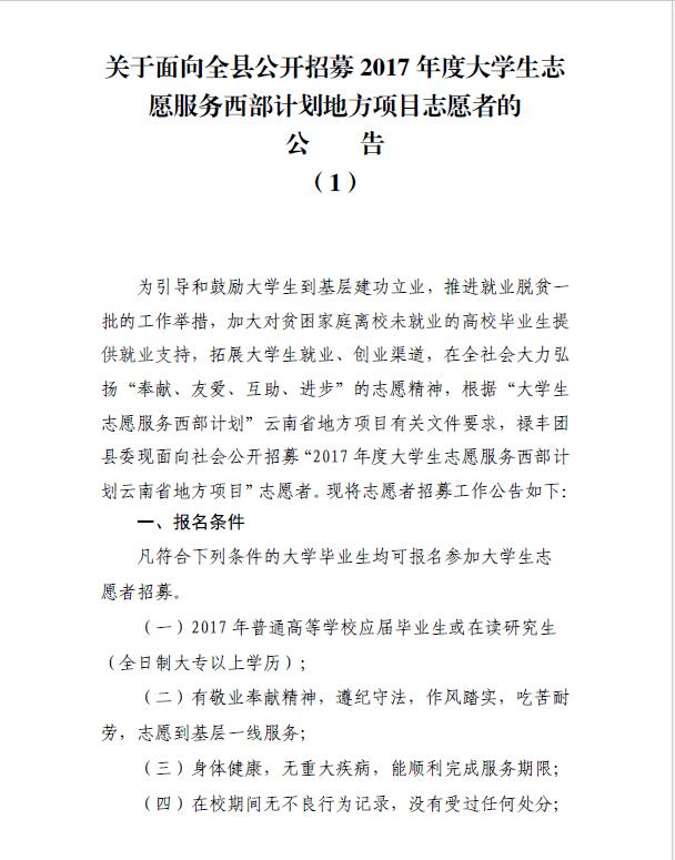 楚雄州祿豐縣2017年西部志愿者招募公告