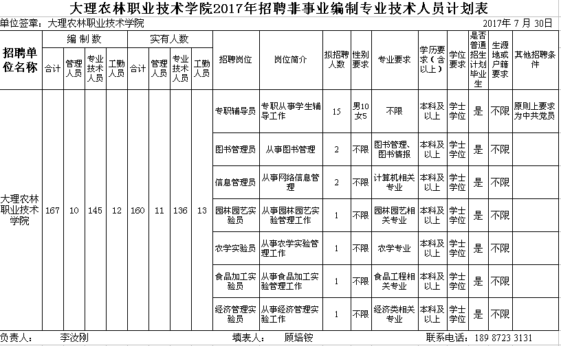大理農(nóng)林職業(yè)技術(shù)學(xué)院關(guān)于招聘非事業(yè)編制專業(yè)技術(shù)人員的公告