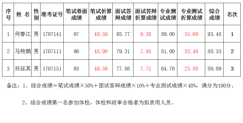 (物理) 2017年教師招聘綜合成績公示
