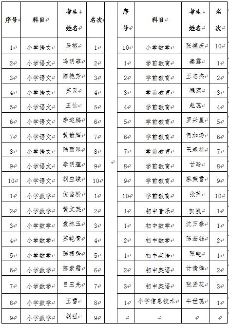 馬關縣2017年特崗教師招聘擬聘用人員名單
