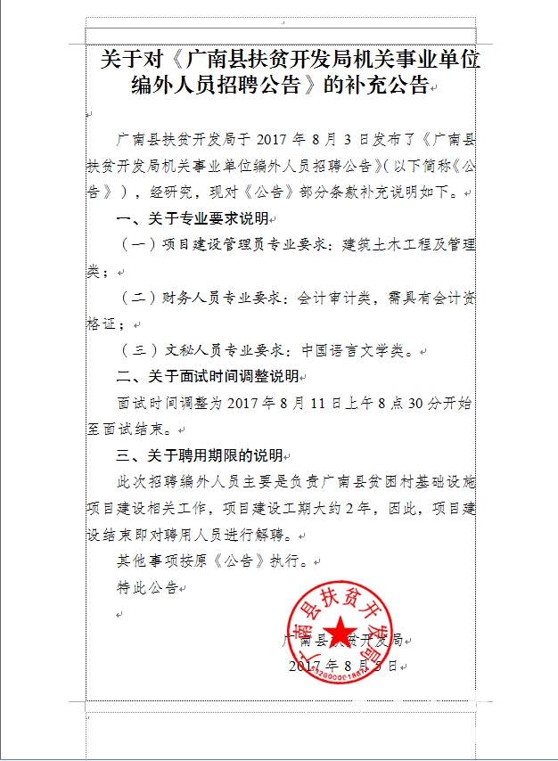關(guān)于對(duì)《廣南縣扶貧開發(fā)局機(jī)關(guān)事業(yè)單位編外人員招聘公告》