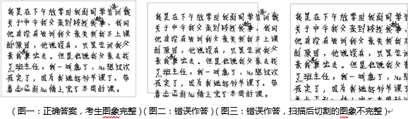 (圖一:正確答案,考生圖象完整)(圖二:錯誤作答)(圖三:錯誤作答,掃描后切割的圖象不完整)