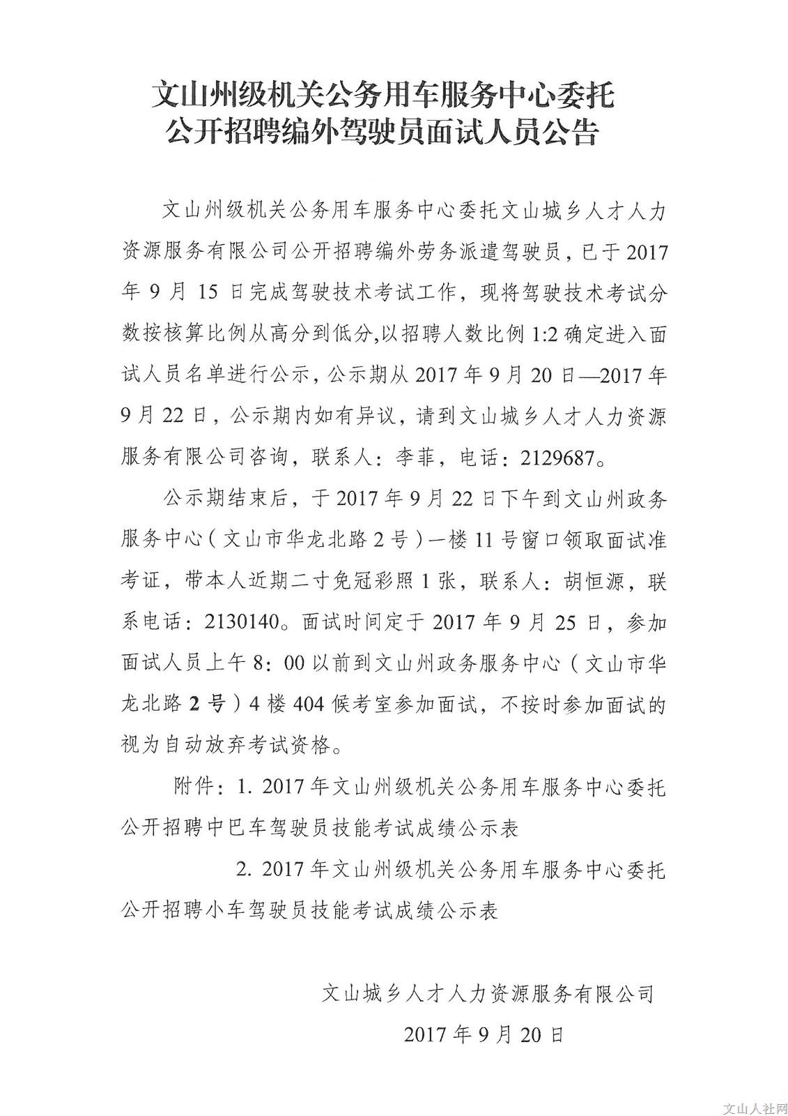 2017年文山州級機關(guān)公務(wù)用車服務(wù)中心招聘編外駕駛員面試人員公告
