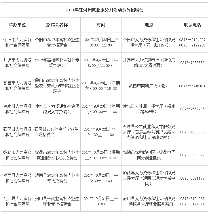 2017年紅河州高校畢業(yè)生就業(yè)服務(wù)月活動(dòng)系列招聘會(huì)