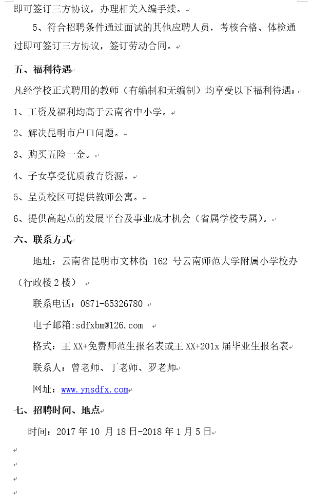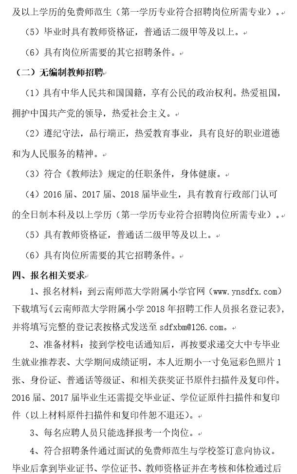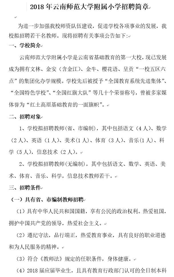 2018年云南師范大學(xué)附屬小學(xué)招聘簡章