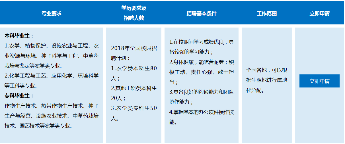 發(fā)展機會:近年來公司營銷、農(nóng)化人員隊伍呈爆發(fā)式增長,公司倡導(dǎo)“以奮斗者為本,以價值創(chuàng)造者為本”的核心價值理念,給年輕有為的員工提供了大平臺、大發(fā)展的機會,有能力、有業(yè)績、有擔(dān)當(dāng)?shù)膯T工得到了快速提拔重用。