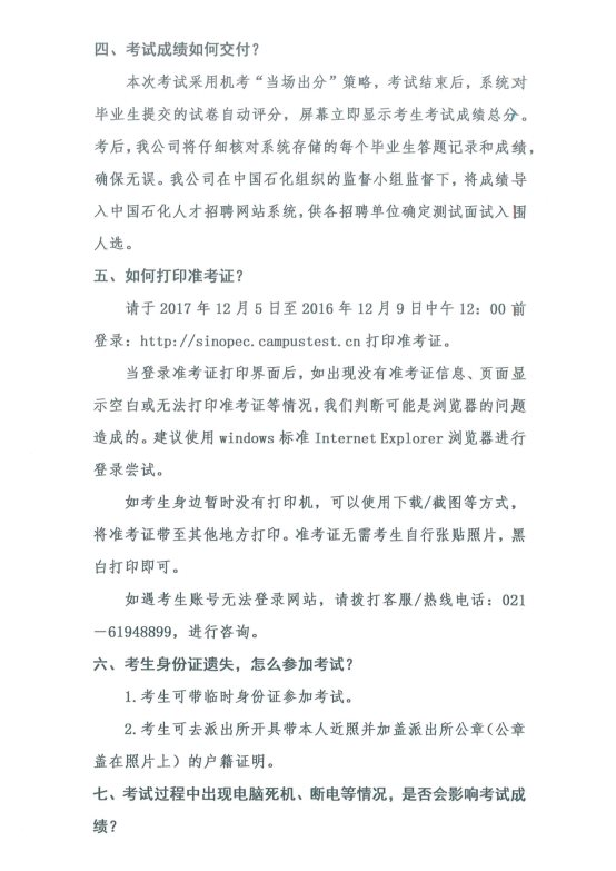 中國石化2018年度畢業(yè)生招聘統(tǒng)一初選考試常見問題回答