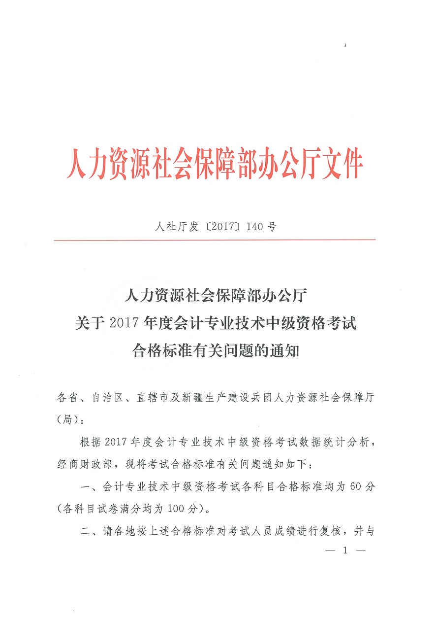 關(guān)于2017年度會(huì)計(jì)專(zhuān)業(yè)技術(shù)中級(jí)資格考試合格標(biāo)準(zhǔn)有關(guān)問(wèn)題的通知