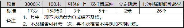根據(jù)民航局要求,男生在取得安全員執(zhí)照前須參加民航局組織的安全員初始訓練考核,體能考核項目及標準為: