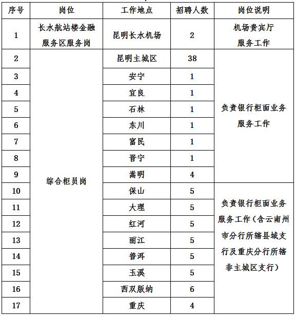 1. 長水航站樓金融服務(wù)區(qū)服務(wù)崗年齡不超過27周歲,綜合柜員崗年齡不超過25周歲;