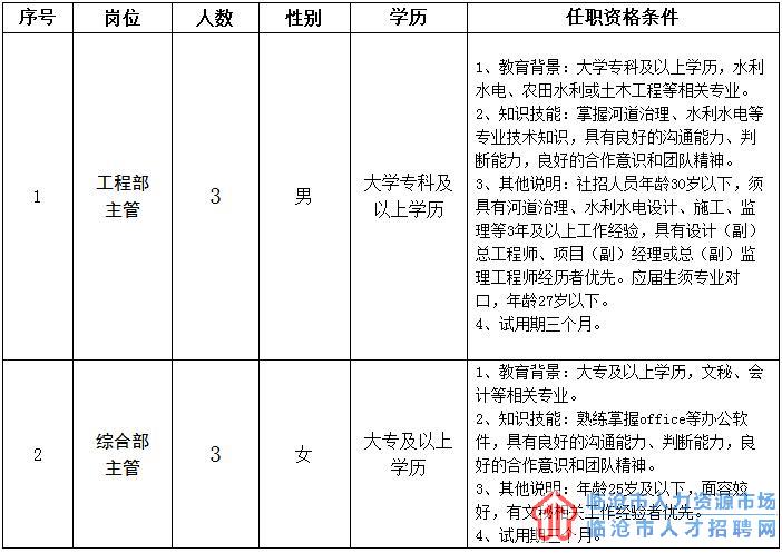 (一)工程部主管、綜合部主管試用期工資3000元/月,試用期結(jié)束后根據(jù)情況調(diào)整工資至4000元以上。