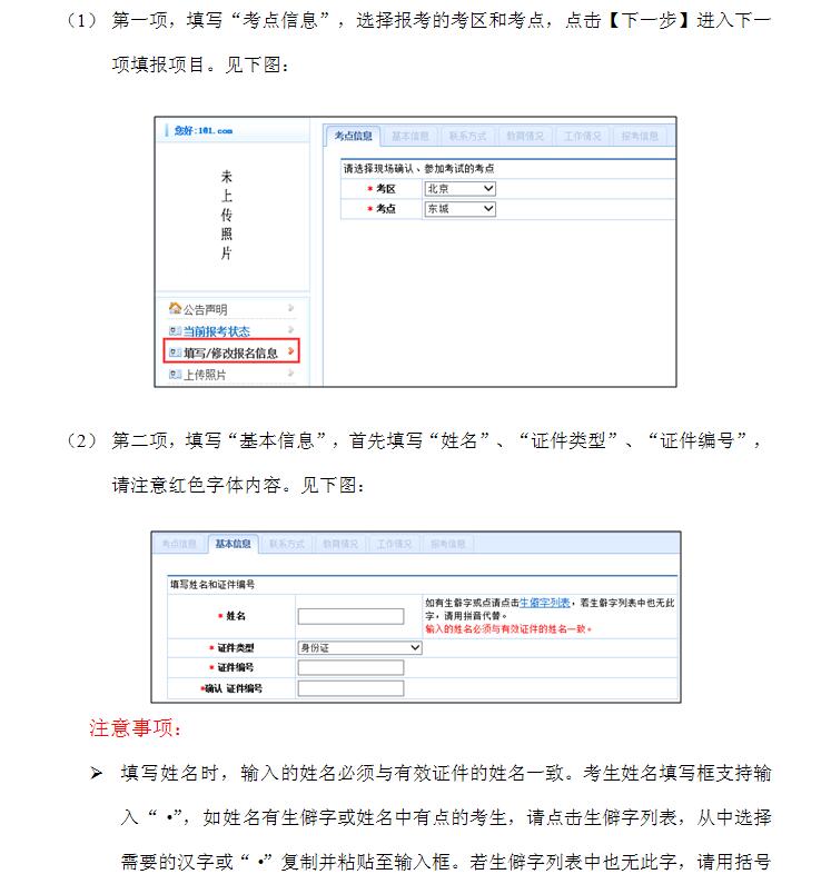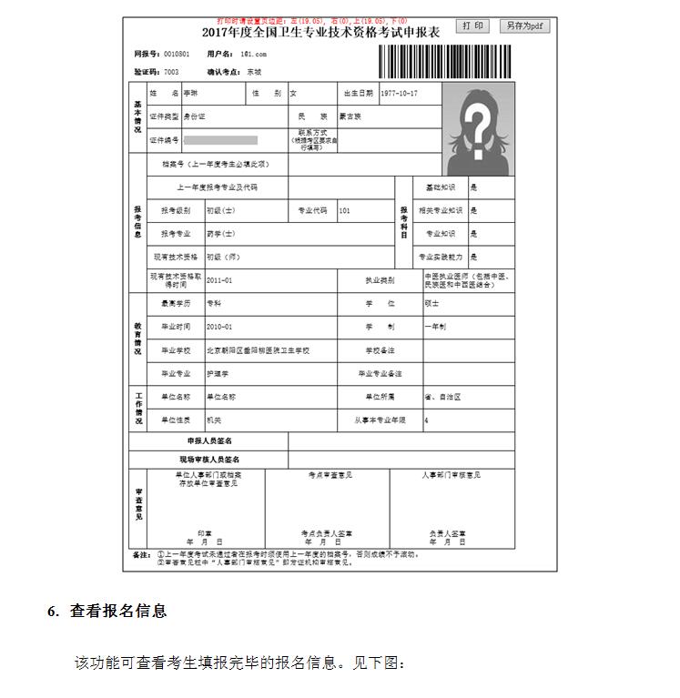 衛(wèi)生專業(yè)技術資格考試報名填表說明