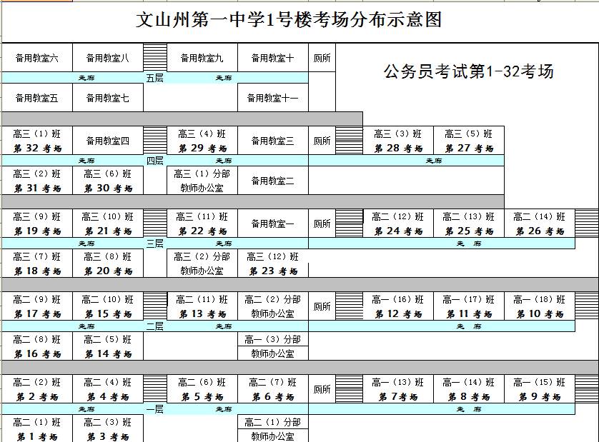 文山州2014年公務(wù)員筆試考場(chǎng)示意圖 州一中
