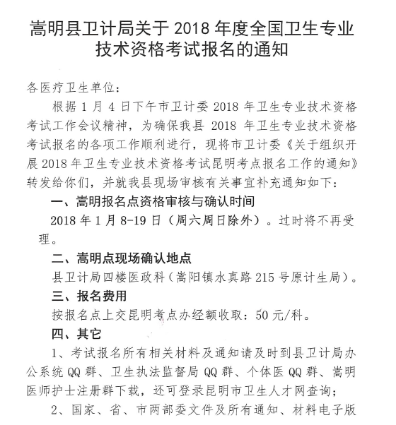 昆明市嵩明縣2018專(zhuān)業(yè)技術(shù)資格考試報(bào)名公告