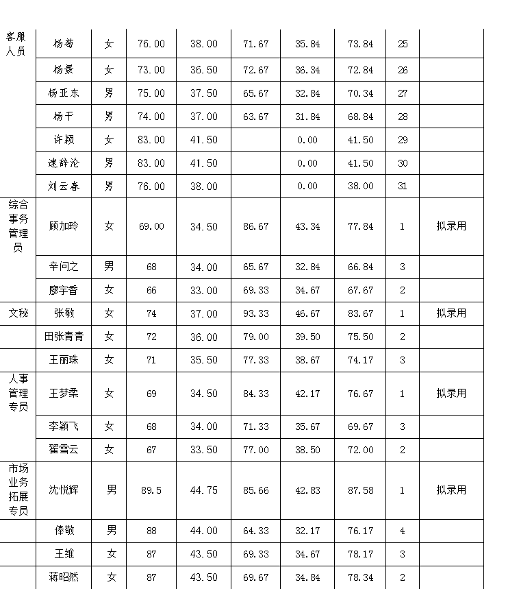 根據(jù)工作需要,昆明智慧通有限公司開(kāi)展了第一批次部分崗位招聘錄用相關(guān)工作。根據(jù)綜合筆面試成績(jī)及排名,現(xiàn)對(duì)擬錄用人員進(jìn)行公示,如對(duì)擬錄用人員有異議,請(qǐng)及時(shí)向昆明智慧通有限公司反映。