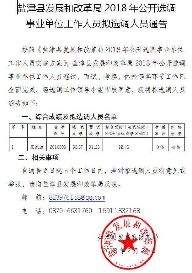 鹽津縣發(fā)改局2018年公開(kāi)選調(diào)事業(yè)人員擬選調(diào)人員通告