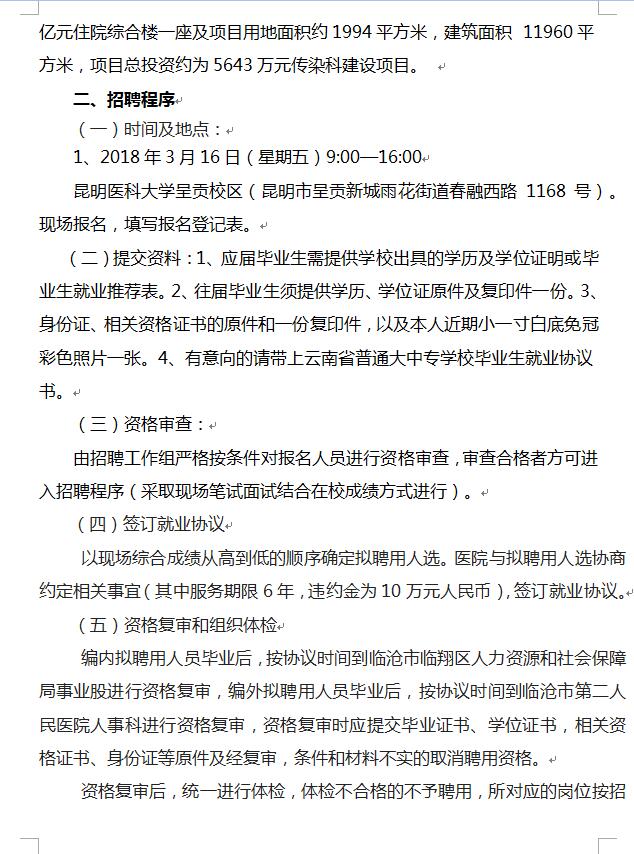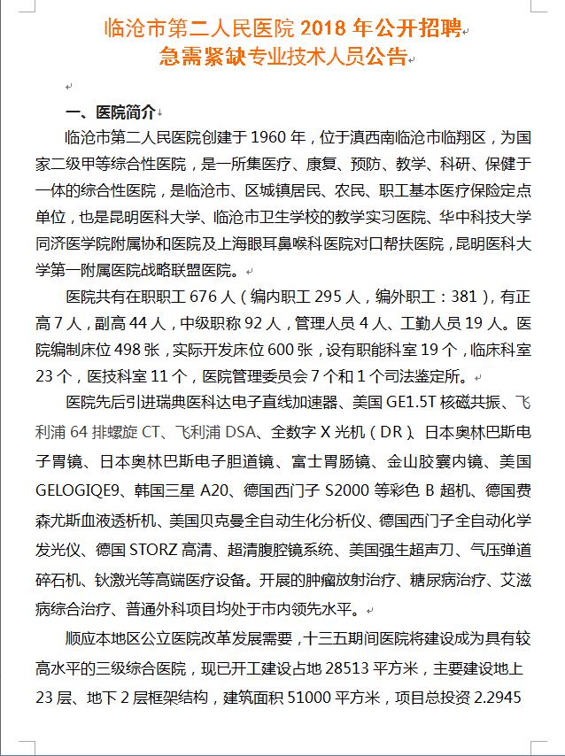 臨滄市第二人民醫(yī)院2018年招聘緊缺人員公告