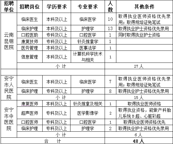 安寧市醫(yī)共體2018年編制外工作人員招聘實施辦法