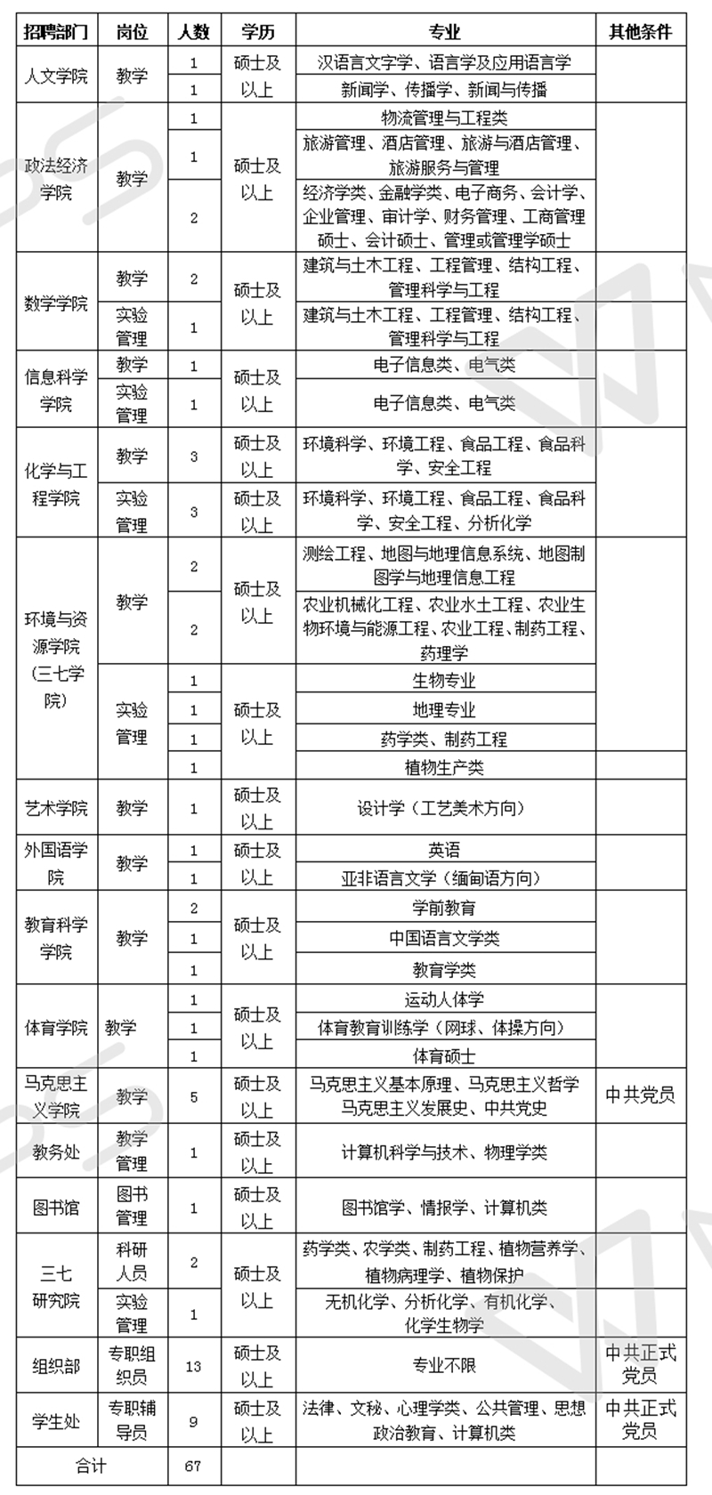 根據(jù)工作需要,文山學院2018年擬面向社會招聘各類合同制工作人員67名,現(xiàn)將有關(guān)招聘事項公告如下: