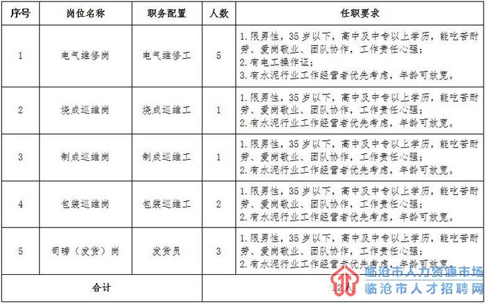 為滿足滄源公司生產(chǎn)經(jīng)營用工需求,經(jīng)云南水泥建材集團(tuán)有限公司批準(zhǔn),決定向集團(tuán)內(nèi)外部公開招聘員工,現(xiàn)將具體招聘事項(xiàng)公告如下: