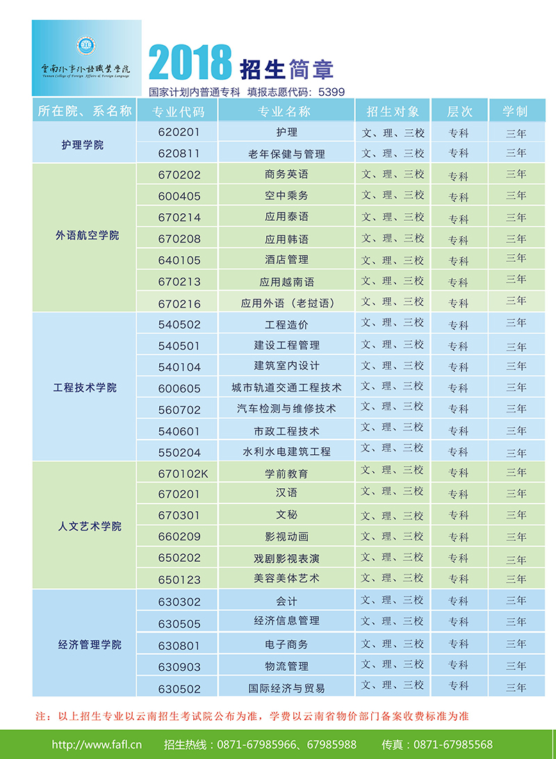 云南外事外語職業(yè)學(xué)院2018年高職招生簡章