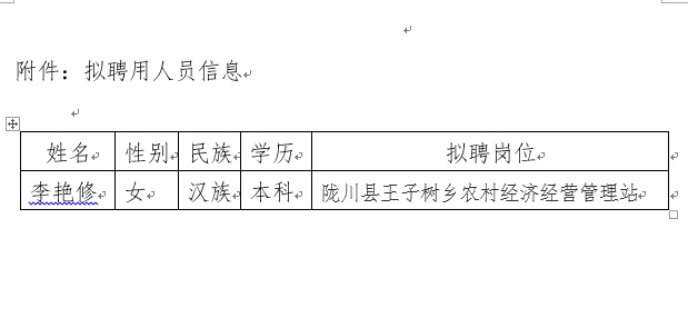 根據(jù)《德宏州軍人隨軍家屬就業(yè)安置實(shí)施細(xì)則》和《2017年德宏州公開考試定向招聘軍人隨軍家屬公告》,隴川縣王子樹鄉(xiāng)農(nóng)村經(jīng)濟(jì)經(jīng)營管理站李艷修孕期已結(jié)束,經(jīng)筆試、體檢合格,現(xiàn)予以公示,公示期為7個(gè)工作日,即2018年6月4日至聘用時(shí)間為2018年6月12日(節(jié)假日順延)。
