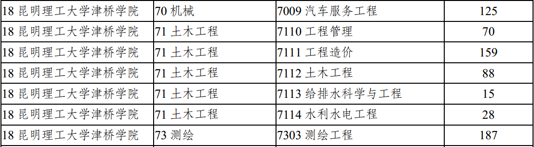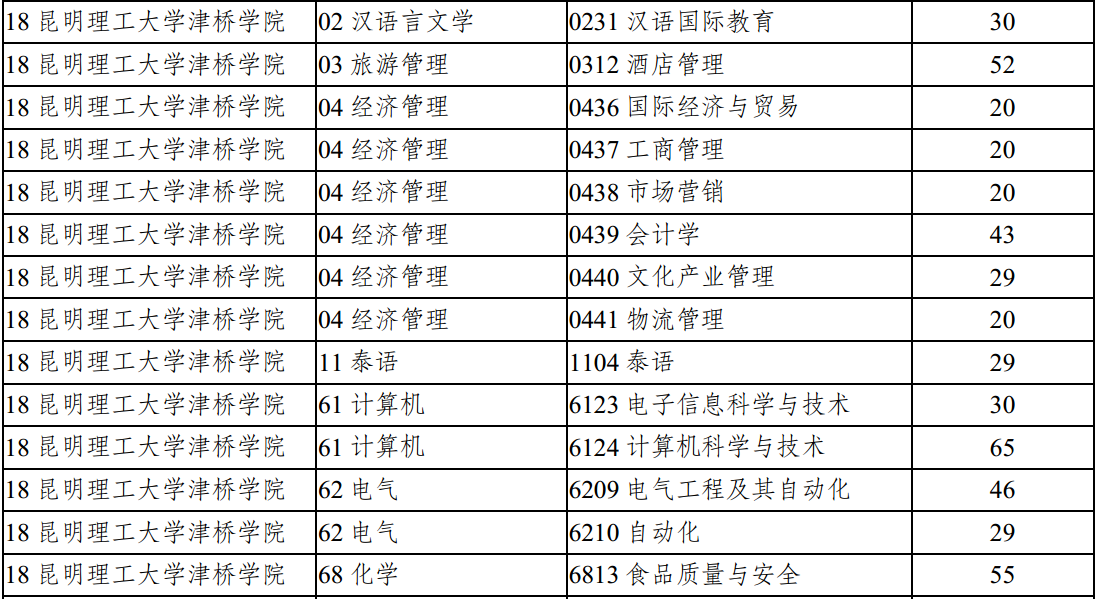 昆明理工大學(xué)津橋?qū)W院2018年專升本征集志愿計劃