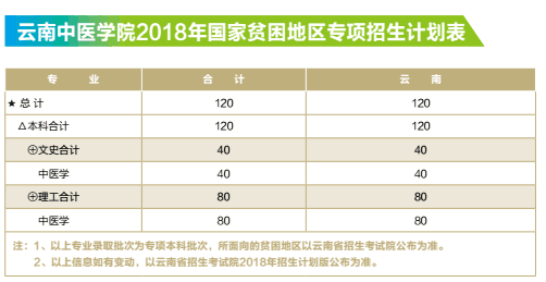 云南中醫(yī)學(xué)院2018年國(guó)家貧困地區(qū)專項(xiàng)招生計(jì)劃表
