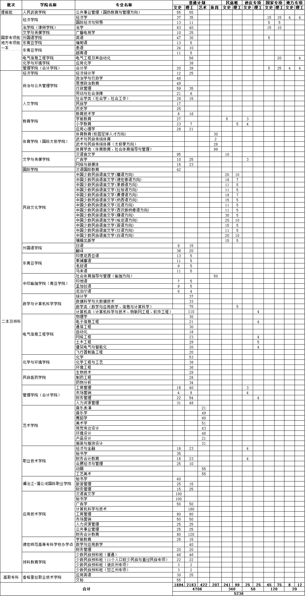 2018年云南省普高招生計劃