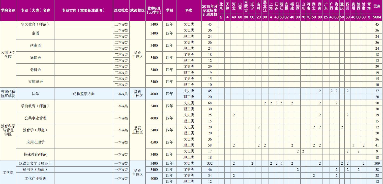 云南師范大學(xué)2018年分省分專(zhuān)業(yè)計(jì)劃表