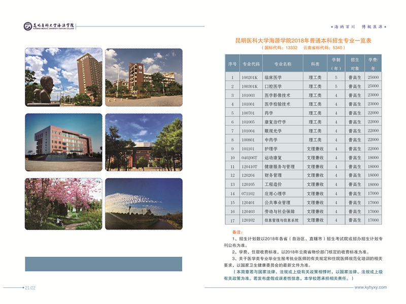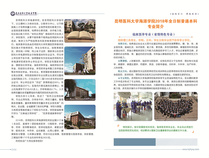 昆明醫(yī)科大學(xué)海源學(xué)院2018年招生簡(jiǎn)章