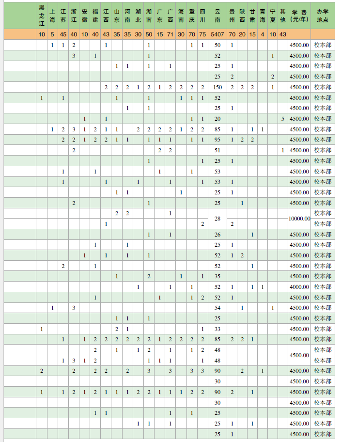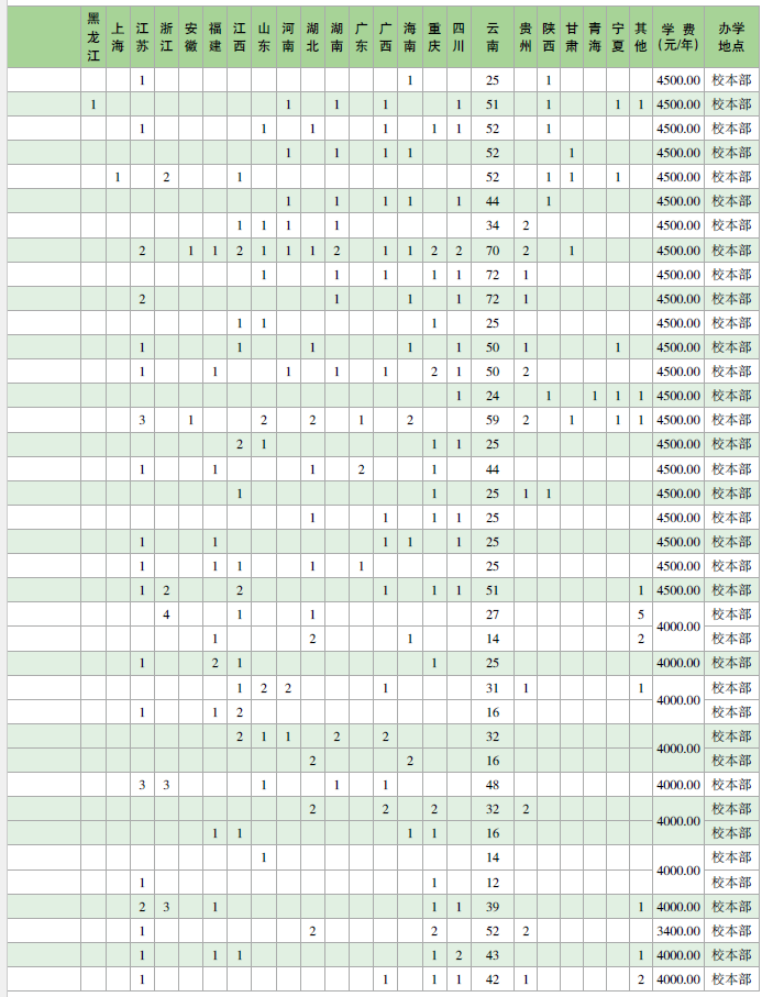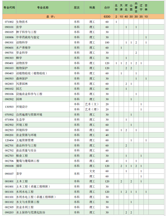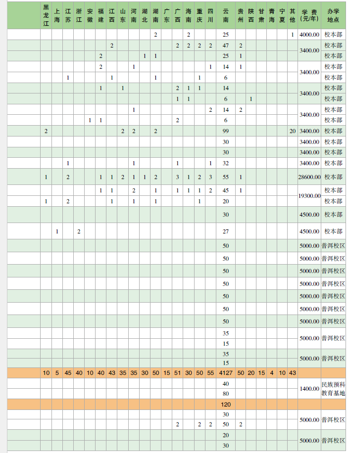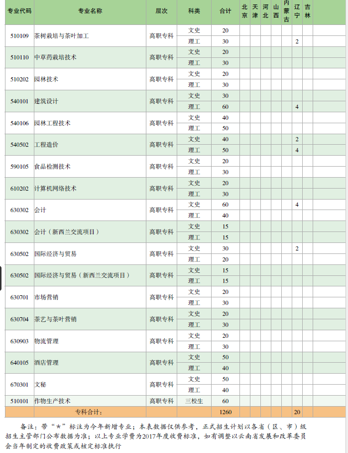 云南農(nóng)業(yè)大學2018年分省分專業(yè)招生計劃表