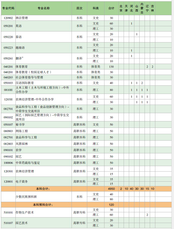 2024年云南農(nóng)業(yè)大學各專業(yè)招生計劃