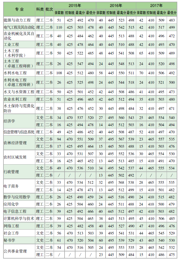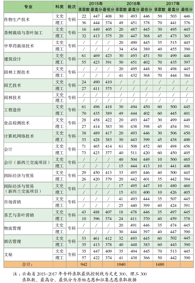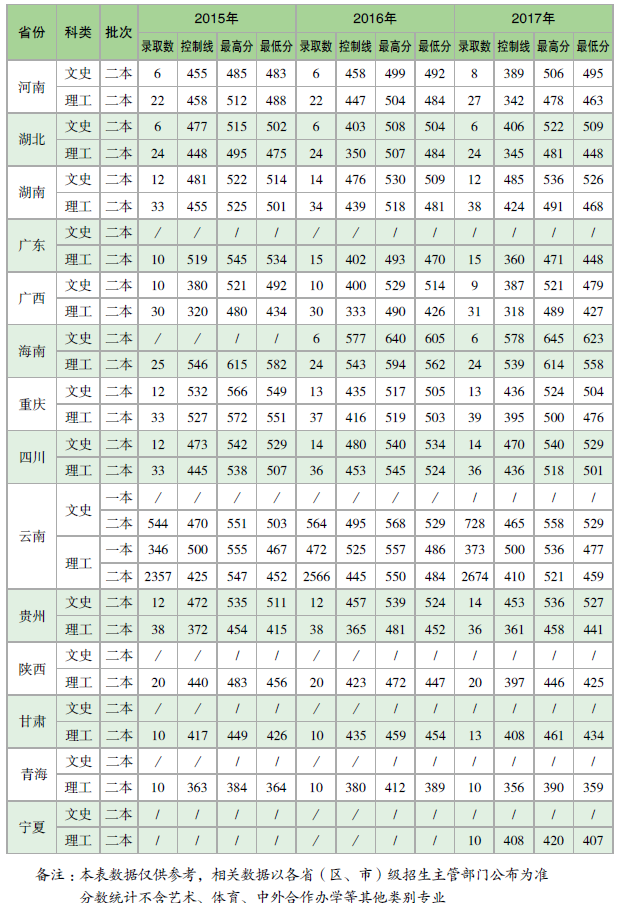 云南農(nóng)業(yè)大學(xué)2015-2017年各?。▍^(qū)、市)本科錄取分?jǐn)?shù)統(tǒng)計(jì)表